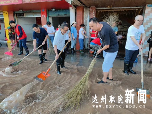 19日上午洪峰过境达城主城区,在组织人事部统一调度下,党政办、宣传部、安全保卫处、后勤管理处积极配合,60余名教职工志愿者迅速集结到滨河东路8-10号,一场水退人进清淤大战就此打响。党委副书记刘江现场指导并参加志愿服务。