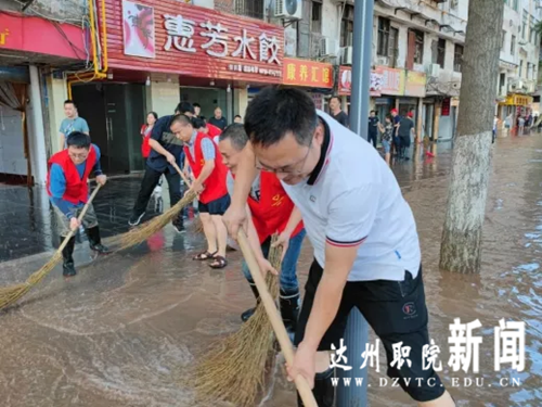 学院教职工志愿者再次奋战洪灾之后清淤第一线