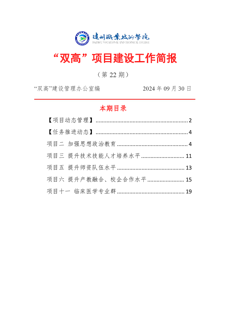 “双高”项目建设工作简报 (第二十二期)