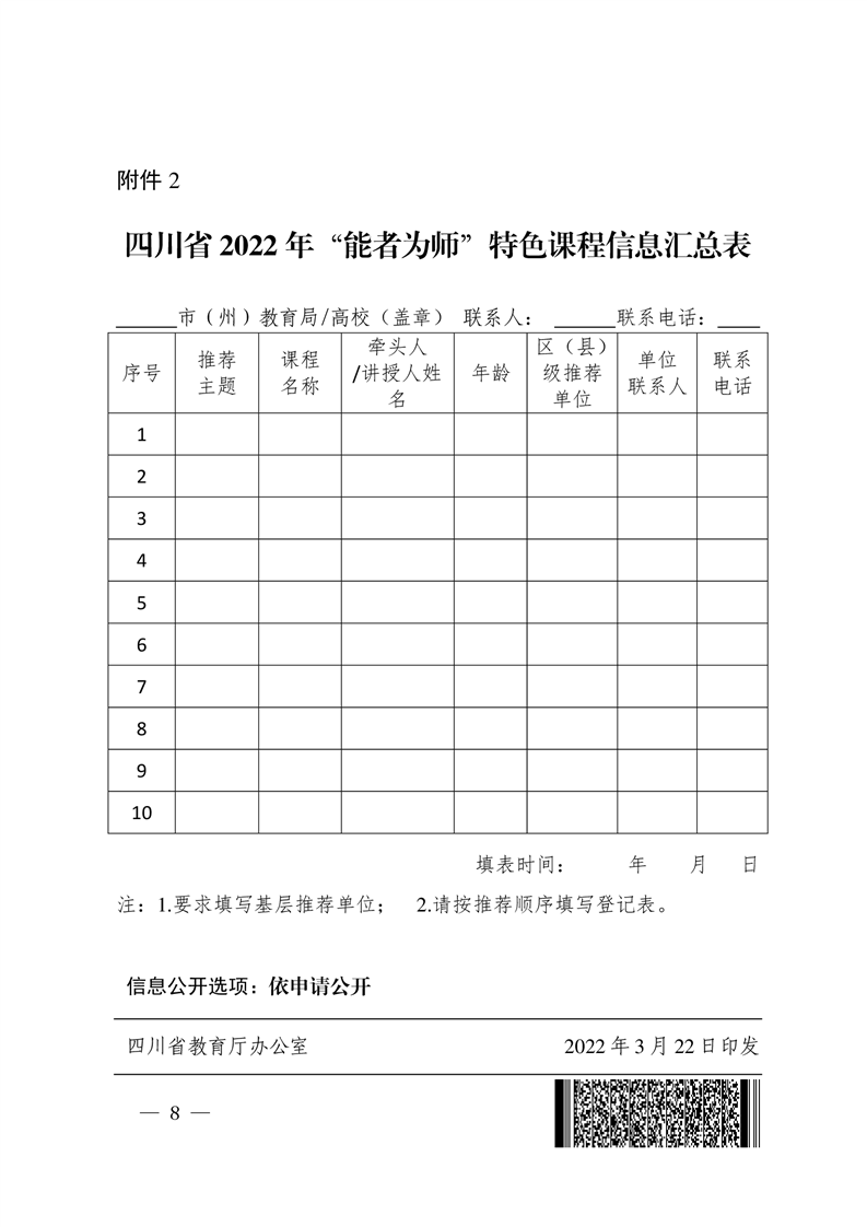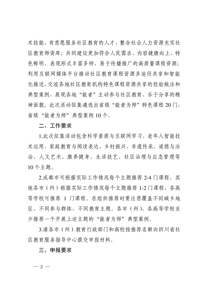 下载  (附件)四川省教育厅办公室关于组织开展“能者为师”特色课程资源及典型案例征集工作的通知.docx  (22.59 KB)