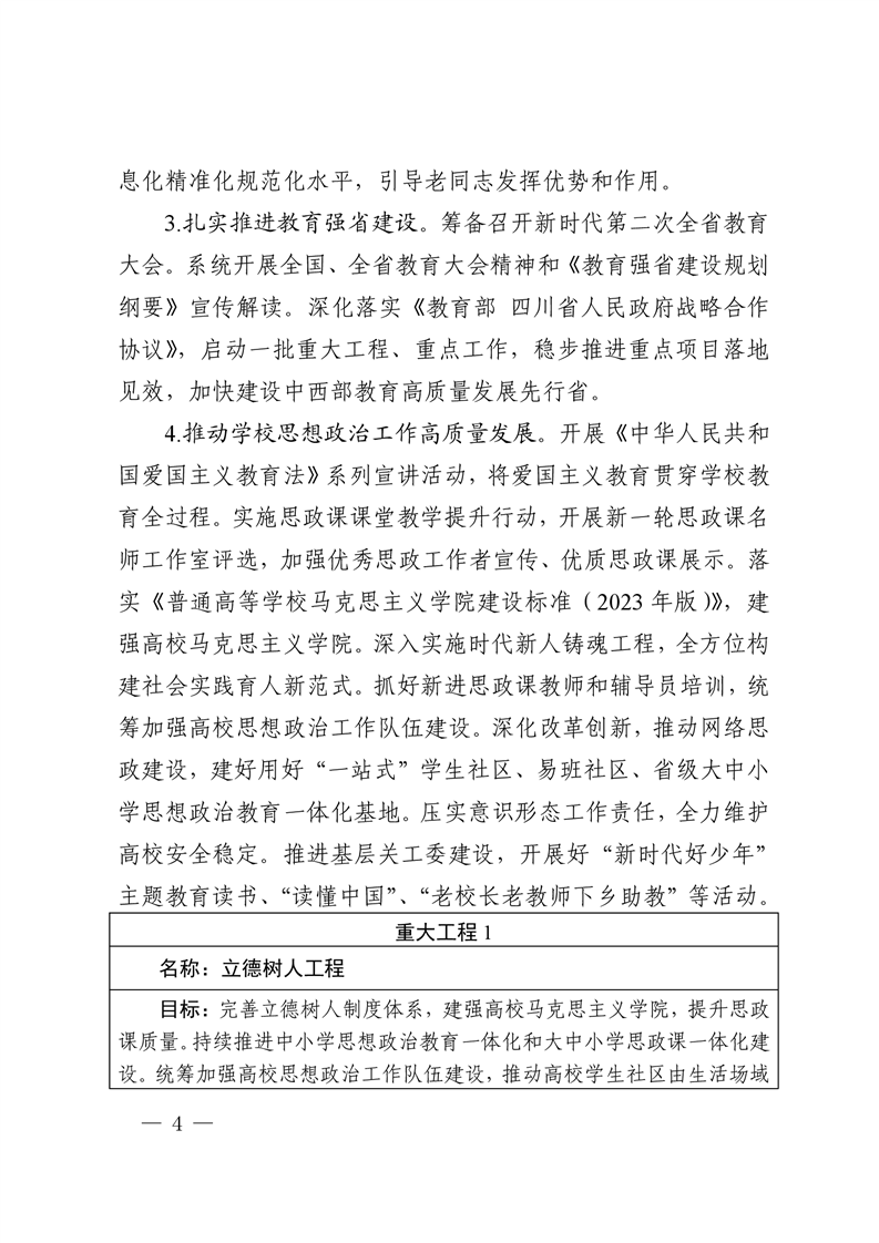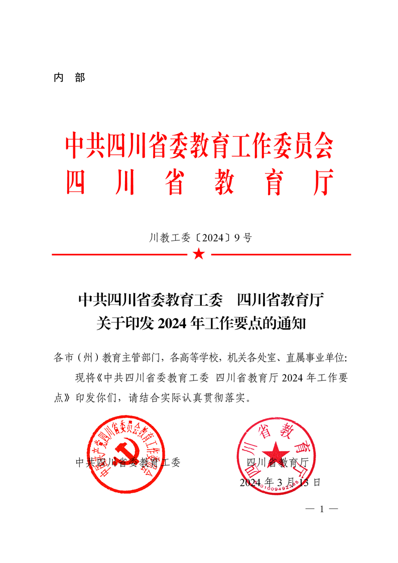 中共四川省委教育工委 四川省教育厅 关于印发 2024 年工作要点的通知